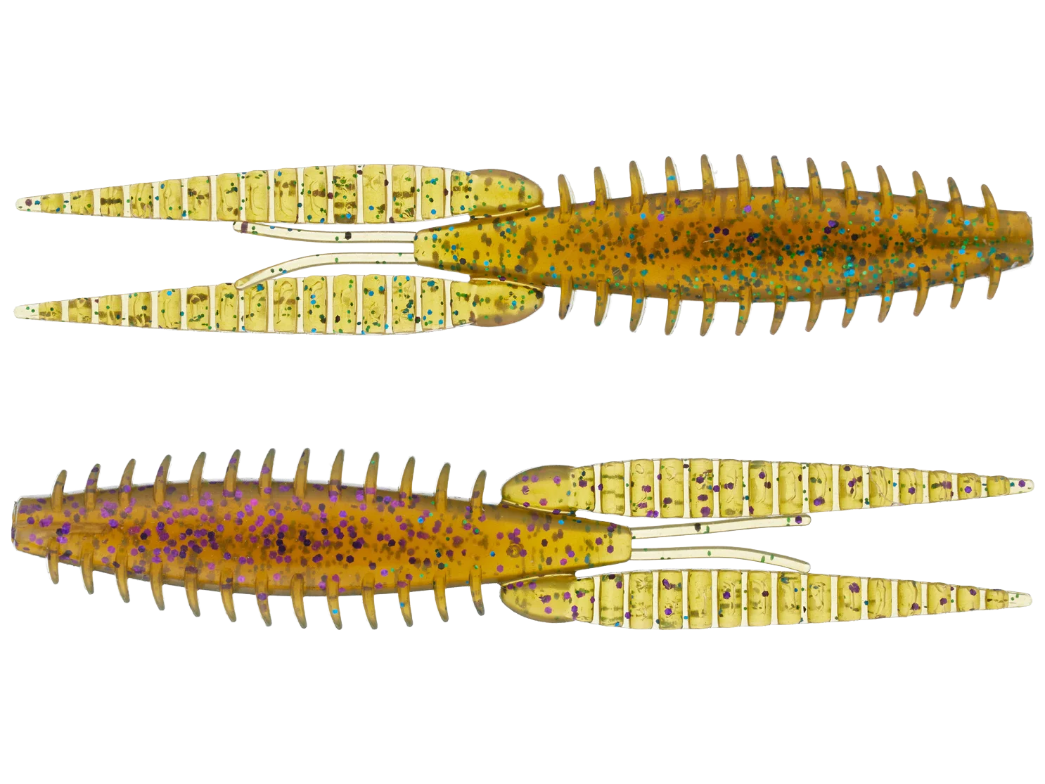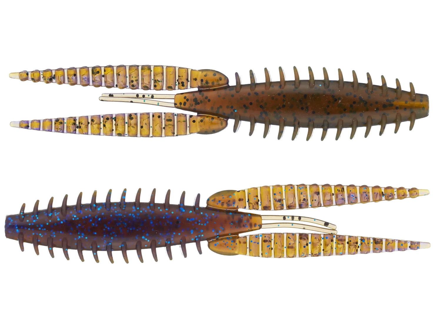A flipping bait designed to slide through the heaviest cover with ease. This bait will stand up with the craw appendages straight up off the bottom to imitate a real crawdad. Works well with flipping/punching weights, stands up heads, needs heads, and the Jig/Vibrating Jig trailer.