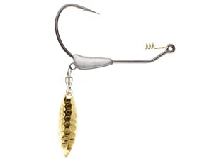 The Zappu Blading Pile Driver is a unique EWG weighted swimbait hook that enhances the presentation of your soft plastics with the help of a bright, dimpled willow blade. Attached using a premium swivel, the blade on the Zappu Blading Pile Driver rotates freely and with a wide flutter thanks to a slight bend at the rear end. To hold your soft plastics firmly in place, the Zappu Blading Pile Driver features a screw-lock bait keeper attached to the eye. Finished with a super-sharp hook point, the Zappu Blading Pile Driver delivers a brilliant presentation that will grab bass' attention when standard techniques fall short.