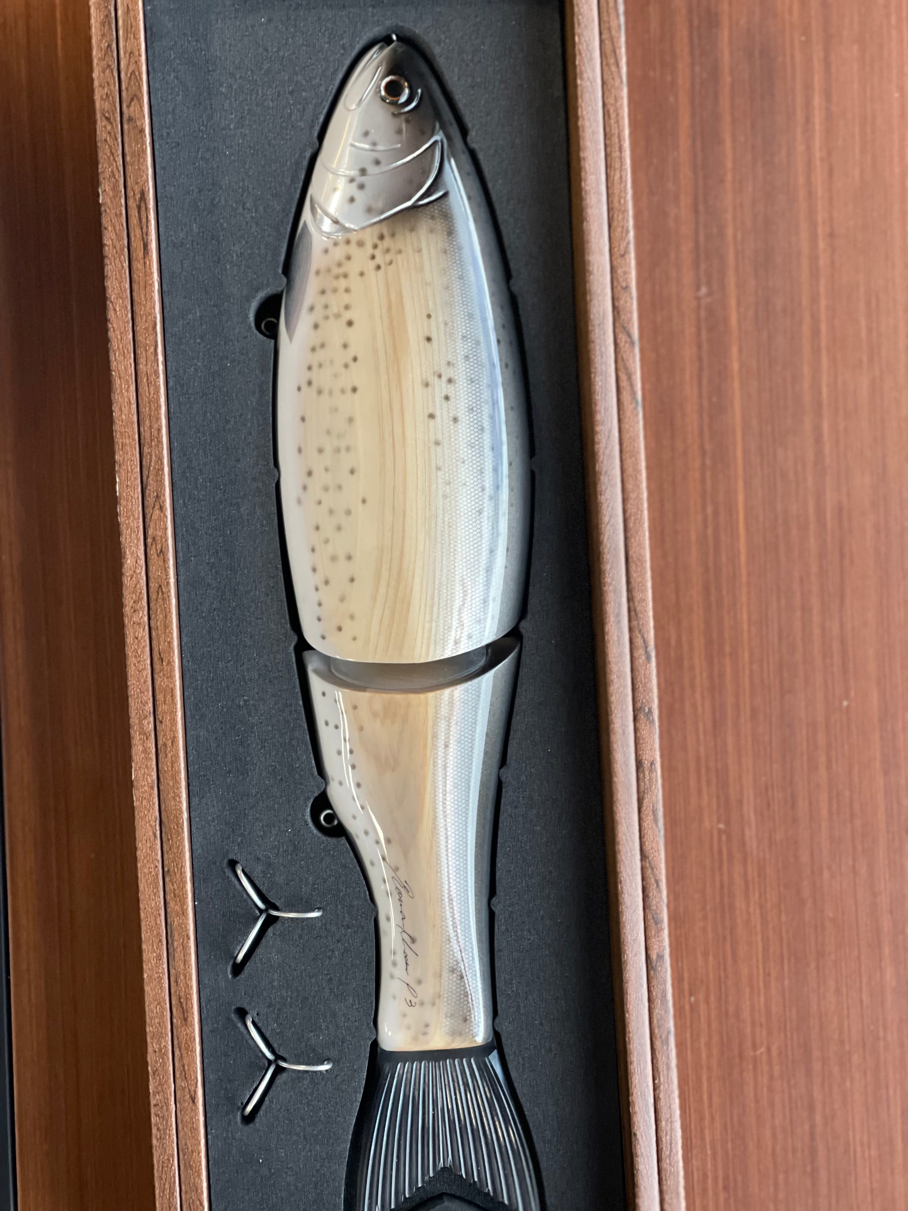Crafted to highlight the beauty of the natural wood grain finish, the Roman Made Natural Wood Mother Chaser Swimbait is a true work of art that can be appreciated by all anglers. Packaged in a premium case that includes high quality hardware, the Roman Made Natural Wood Mother Chaser Swimbait is a must-have for lure collectors and swimbait aficionados.