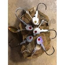 Chris Zaldain's Santone Z-Spin Head is HERE! These swimbait heads have 3D bubble eyes, a longer blade wire than most so the blade action clears larger swimbaits, and a 3/0 Gamakatsu heavy-wire hook. Sold in a pack of 1 in five remarkable colors with the option of a nickel or gold blade on a ball-bearing swivel. Sizes 3/8 and 1/2 oz. have a 3/0 and size 3/4 has a 4/0.