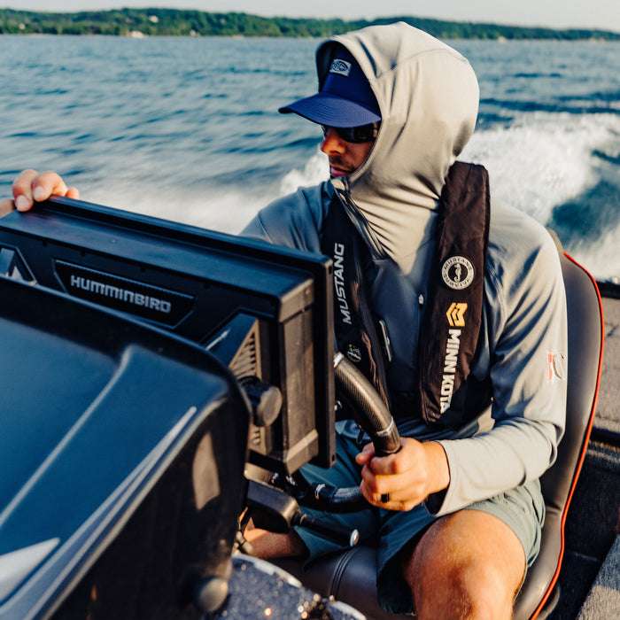 AFTCO collaborated directly with Jason Christie to produce a performance sun protection shirt that would help his comfort and effectiveness when dealing with long hours of sun exposure on the water. Meet the Jason Christie signature sun protection hoodie by AFTCO. Jason's direct feedback was instrumental to fine tune our already popular Samurai hooded performance shirt. Jason took additional measures to modify the hood of his Samurai shirts to improve the sun protection coverage on his face and prevent glare. The AFTCO product development team worked alongside Christie to adapt his unique modifications and produce a performance sun protection shirt with an increased hood size, neck closure system and an integrated hat visor sleeve. These specific features requested by Jason improves the surface area of sun protection on your face, neck, and ears while reducing overall glare from the sun's reflection on the water.