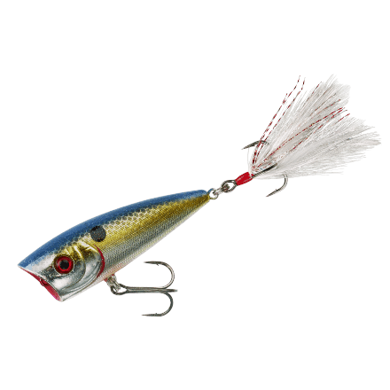 Lethal at all retrieve speeds, the Booyah Boss Pop is easy to walk and creates a dead-on panicked baitfish presentation that draws crushing strikes. Offered in a number of proven colors and fitted with a feather-dressed treble, the Booyah Boss Pop provides a topwater presentation that will show bass who’s boss.