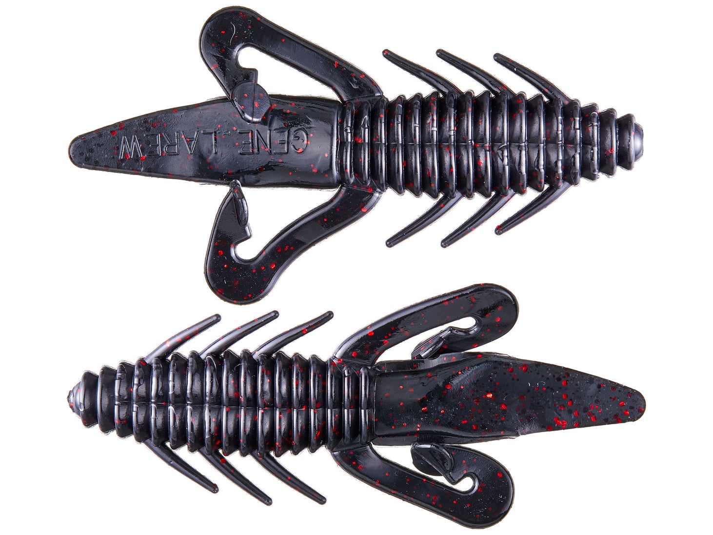 The Gene Larew Biffle Bug incorporates the best features of several top baits into one compact design. The Biffle Bug's body is slim yet wide, and covered with concentric ridges. The first 3/4 inch of the Biffle Bug is solid for hook support, while the rest of its body is hollow like a tube. The cavity is oval, not round, better fitting the shape of the body and also serving to hold a rattle in place simply through natural compression. The Biffle Bug's hyper-active swimming legs feature a special foot-pad to make them come alive with the slightest movement.