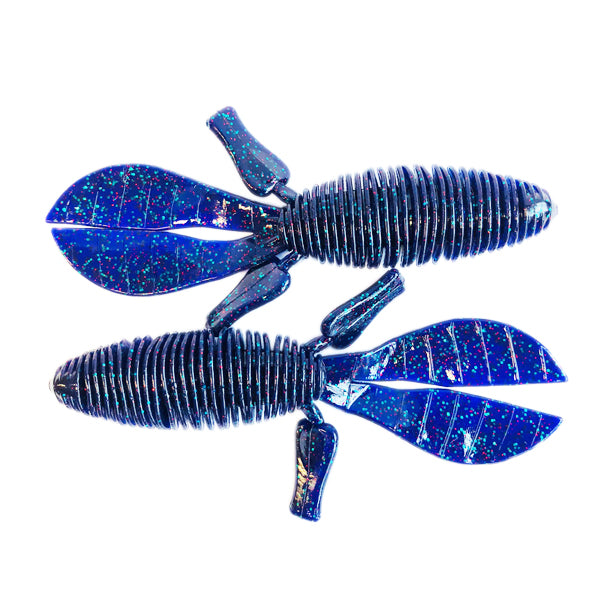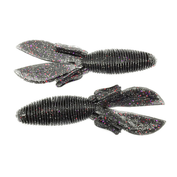 Pitching and flipping has a new go-to bait. The Missile Baits D Bomb is a bulky 4" creature bait with a unique, ribbed body designed to displace lots of water, resulting in a straight fall. The tails sail when left connected or flap wildly when separated. The body is thinner where the hook comes out for easy hook sets, but has a thicker head so the bait stays on the hook.