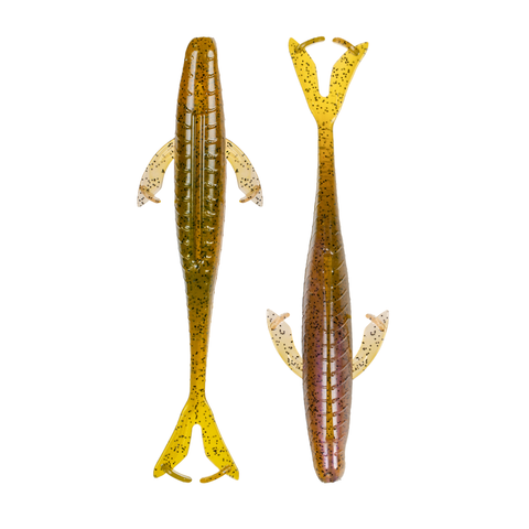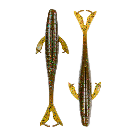 Sporting a distinctive design and exceptional versatility, the 6th Sense Hondo Swimbait is crafted to be a hybrid "creature swimbait" that can be fished on a jighead, Carolina or Texas rig, used as a vibrating jig trailer, and more. Made with a meaty yet streamlined body, the Hondo features swept pectoral fins and a horizontal split tail that all come fitted with special flanges to readily twitch, pulse, and kick on every presentation. Ideal for fishing heavy cover or open water, the 6th Sense Hondo Swimbait also comes equipped with a long, deep belly slit for easy weedless rigging.