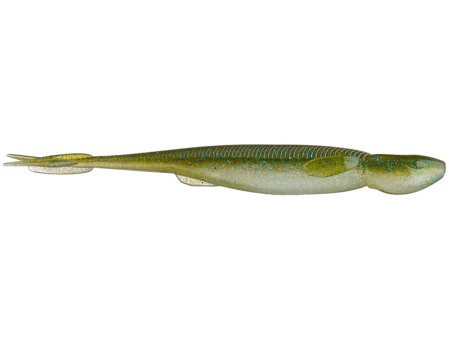 Delivering a highly realistic baitfish presentation, the Reaction Innovations Shiver Glide excels on a wide range of applications and will trigger the wariest of predators into biting. Molded with lifelike fins and a forked tail that features a thin ridge down the center, the Reaction Innovations Shiver Glide erratically darts and glides through the water with slight twitches from the rod when rigged weightless on an EWG or screw lock style hook. The unique tail design also helps it track straight in current and generate a subtle shimming action when used as a trailer for a vibrating jig, spinnerbait, and scrounger head. Offered in a wide selection of Reaction Innovations’ custom color schemes, the Reaction Innovations Shiver Glide is a versatile soft plastic that should be in every angler's tackle box.
