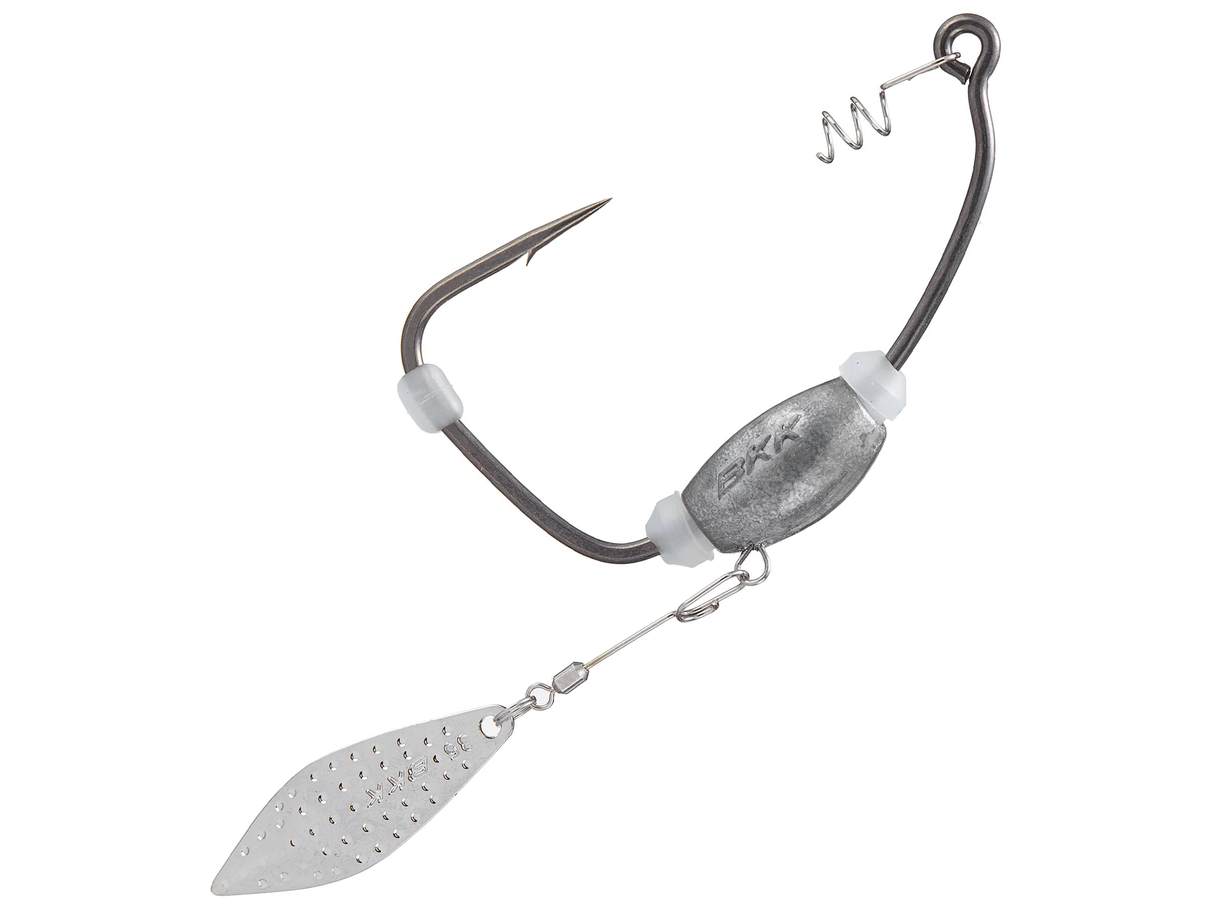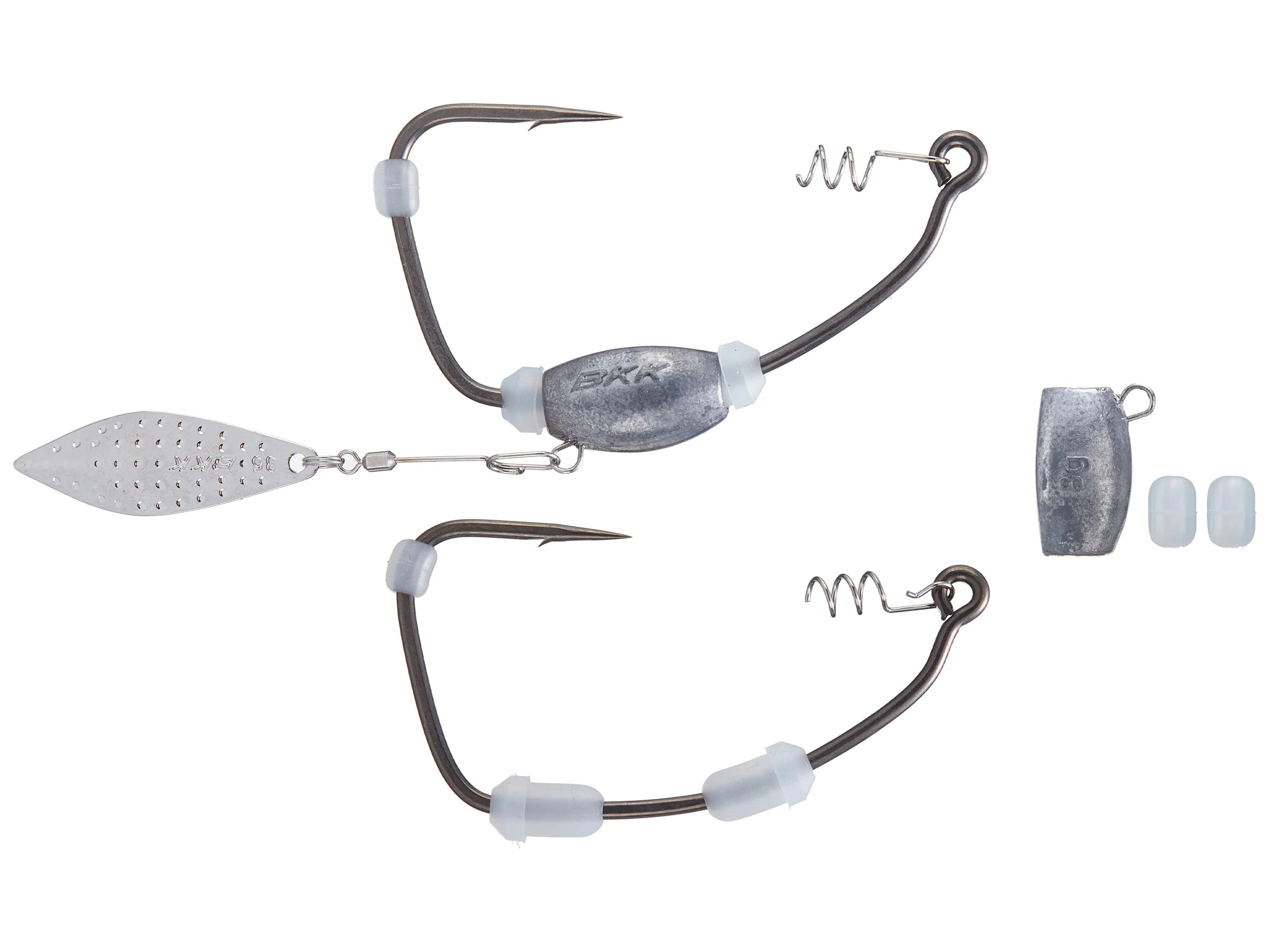 To set themselves ahead of the rest of the swimbait hooks on the market, the BKK Titan Diver+ Hooks include several premium components that work in tandem to enhance your favorite soft plastic swimbait’s presentation. A locking spring-style keeper system hangs on from the eye of the hooks to securely lock down your favorite plus-sized plastic while a silicone stopper helps to keep your bait in the perfect position. The base of the hooks boast a weighting system that enables anglers to adjust the weight’s position along the shaft or swap it out for a different weight entirely. They also emerge from the packaging armed with a removable fluttering blade that adds a generous amount of flash to help predators locate your lure in all water clarities. Powerful and versatile, the BKK Titan Diver+ Hooks are built to pair with your favorite swimbaits and boost their performance to the next level.
