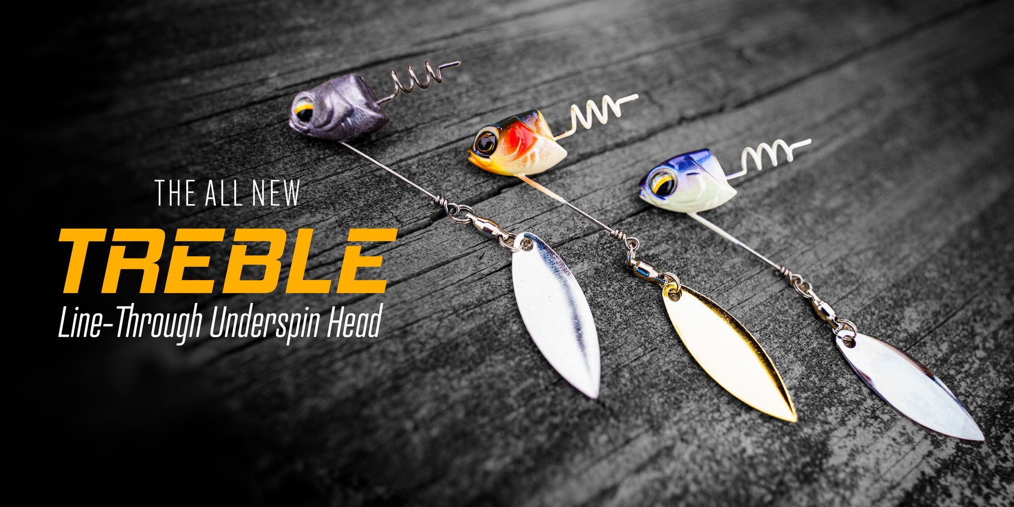 The newest edition to the Treble Head family is the Treble Underspin. When you want your soft plastic swimbait to have a little more flash, the Treble Underspin will be your go-to line through jig head. Whether you are wanting to imitate more bait fish or if you are fishing in stained / muddy water, tie on a Treble Underspin and start catching ‘em. The unique design allows you to run your line through the head and tie on your most trusted treble hook. The built in screw lock provides an easy, secure, way to rig your soft plastic. Simply embed your treble hook into the top of the swimbait and start casting. Once you hook a fish, the treble hook will come loose from the swimbait, keeping your favorite swimbait intact and ready to use on the next cast. Pairs perfectly with our Divine Swimbaits, Whale Swimbaits and if you’re looking for a bigger profile, throw it on a Sweep.
